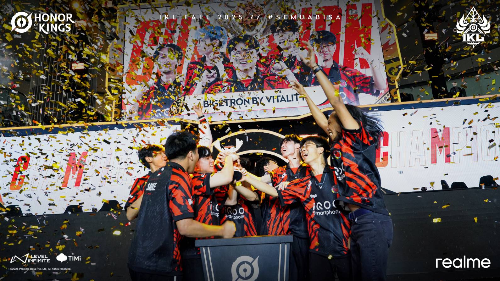 Turnamen IKL Fall 2025 ini sukses digelar oleh Level Infinite dan TiMi Studio Group, dengan dukungan realme sebagai Official Gaming Phone. Seluruh pertandingannya bisa disaksikan melalui kanal resmi Honor of Kings Indonesia di YouTube, Facebook, dan TikTok.