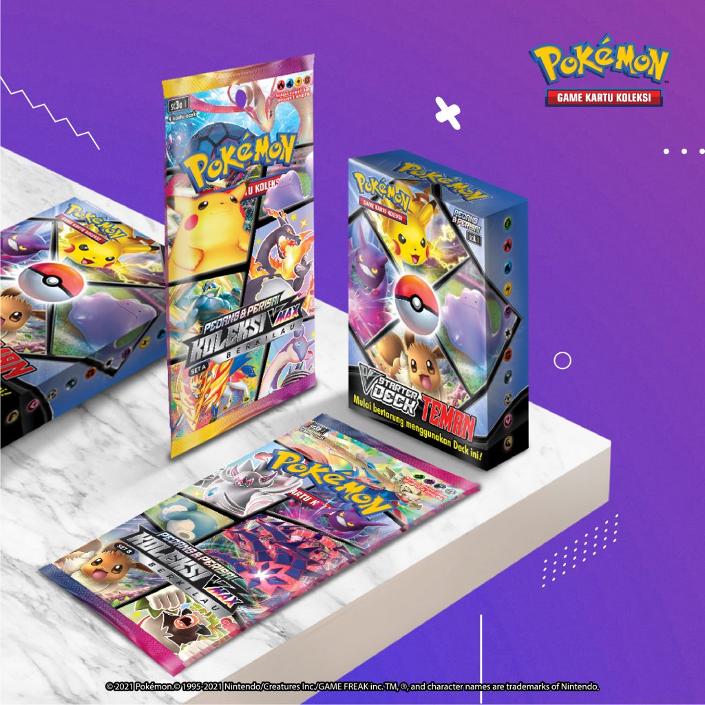 Perisai yang bisa dimainkan bagi trainer pemula dan bisa juga menjadi koleksi. Kemasan Starter Deck & Booster Pack pada Expansi “Koleksi VMax Berkilau” berpotensi untuk mendapatkan Amazing Pokémon, Pokémon V atau Pokémon VMax. Setiap Booster Pack dipastikan akan mendapatkan kartu holofoil.Bagi kalian yang mau main & koleksi Pokémon TCG Seri Pedang & Perisai, kalian sudah bisa beli di E-Commerce, Local Game Stores, dan minimarket kesayangan anda di lebih dari 100+ kota besar se-Indonesia! Yuk dibeli jangan sampai kehabisan!!