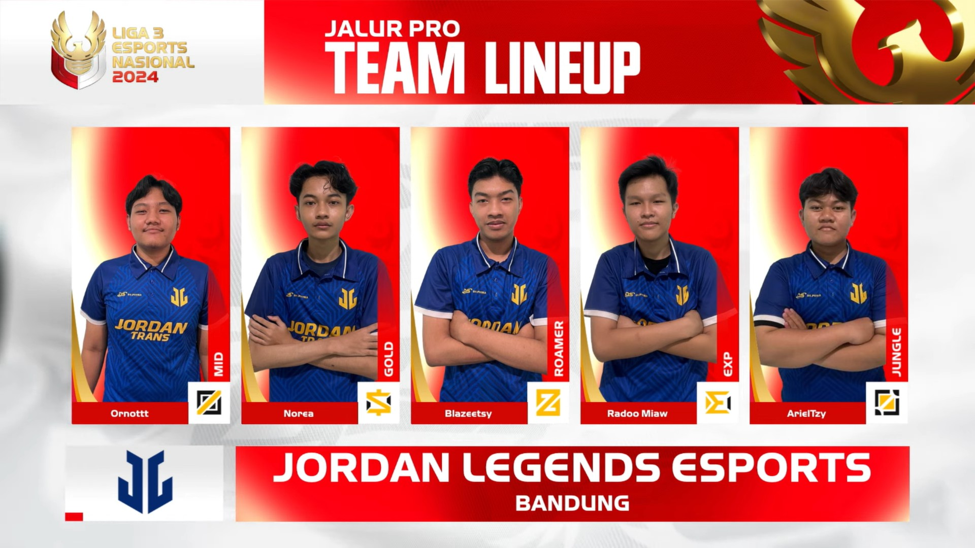 Di Grup A, Jordan Legends Esports asal Bandung berhasil mengamankan tiket ke babak knockout dengan penampilan cemerlang dari Norea, goldlaner memiliki kemampuan dalam mengumpulkan pundi-pundi gold dan menjadi mesin pembunuh untuk timnya membantu Jordan Legends Esports lolos ke babak knockout.