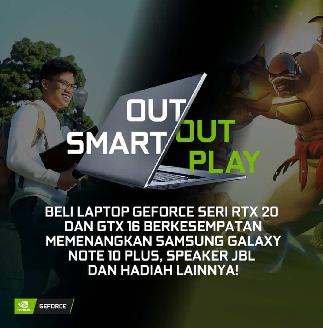 Saat yang tepat untuk pelajar yang membutuhkan Laptop tipis, ringan dan bertenaga di tahun pelajaran baru. NVIDIA memberikan penawaran menarik yaitu undian lucky draw Back To School: NVIDIA GeForce Outsmart Outplay. Dalam waktu yang terbatas, setiap pembelian Laptop GeForce seri RTX atau GTX 16, anda yang beruntung mempunyai kesempatan untuk memenangkan hadiah lebih dari Rp. 67,250,000.
