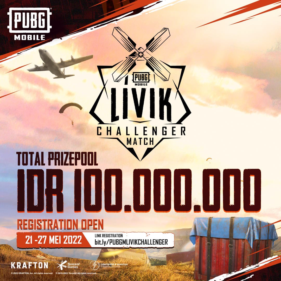 PUBG MOBILE Livik Challenger Match merupakan turnamen yang terbuka untuk umum yang bisa diikuti oleh seluruh pemain di Indonesia. Periode pendaftaran turnamen ini berlangsung pada 21-27 Mei 2022, sementara pertandingannya akan mulai digelar pada tanggal 30 Mei 2022 mendatang.