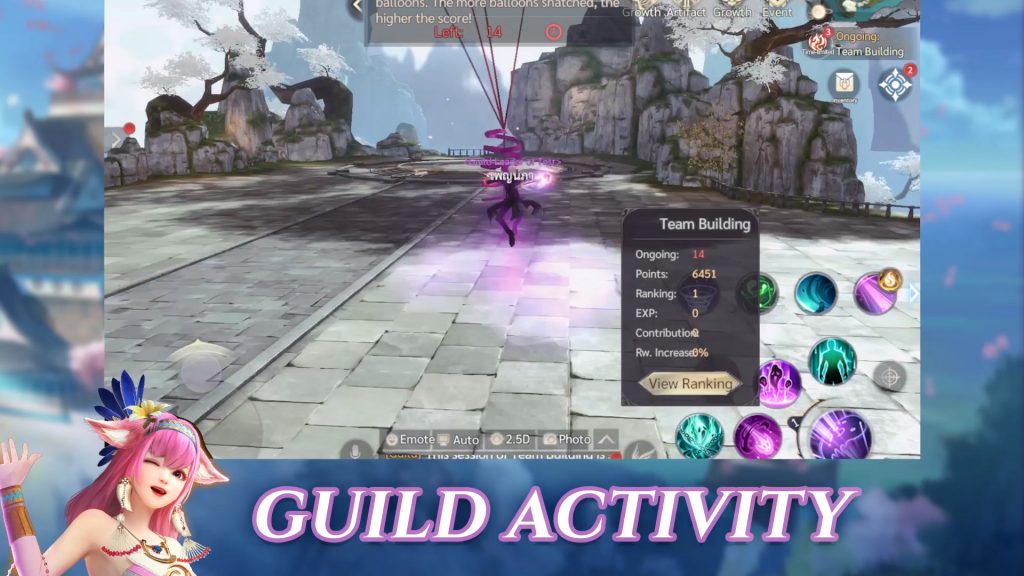 Catch the Balloon : Pada aktivitas ini, pemain diajak untuk menangkap balon diudara dan akan ada reward juga dari hasil tangkapan balon ini., jadi kalian jangan bingung kalau nanti ada teman guild kalian yang loncat- loncat di base guild ya…
